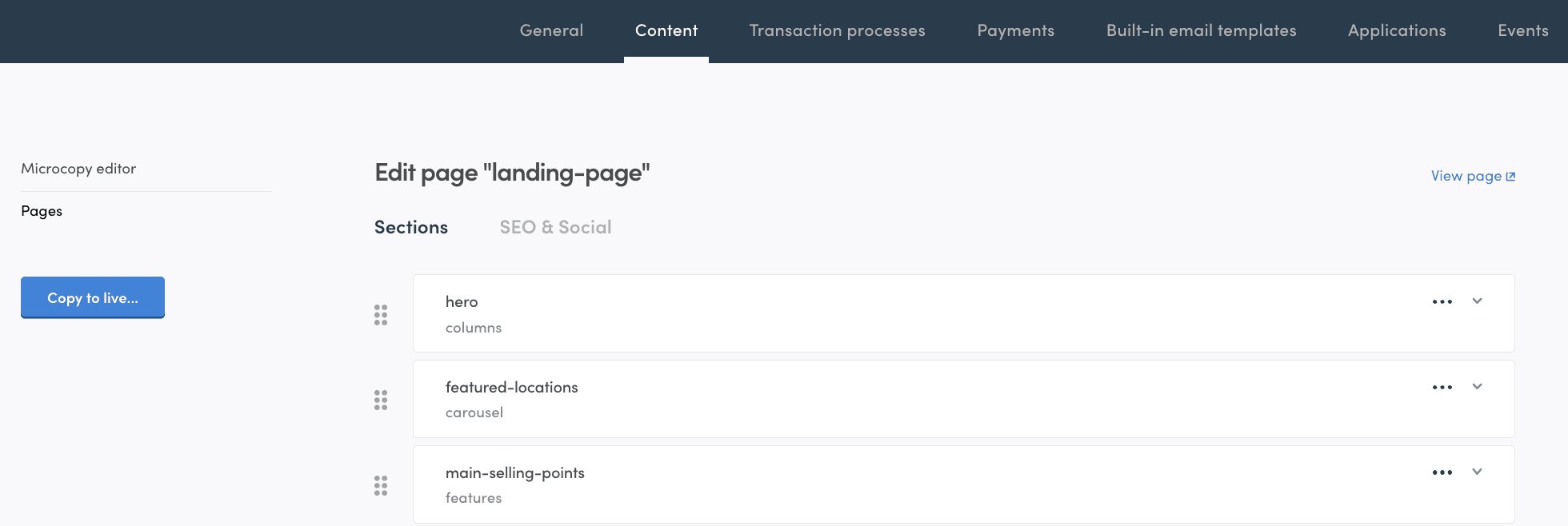 You can also modify your marketplace content pages after going live. You will still need to make and test the changes in your test environment. Then, after you are happy with all your page changes, you can click the "Copy to live" button.
